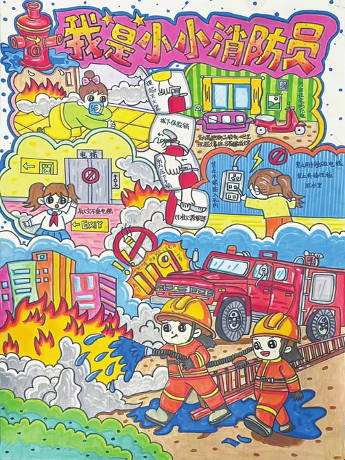 每一笔色彩都寄托着对安全的重视,每一个画面都凝聚着对生命的敬畏;每一幅作品都是一次“沉浸式”科普,每一个画面都承载着一份安全责任。孩子们用稚拙而真诚的笔触,将抽象的消防安全知识转化为生动易懂的视觉语言,不仅展现了学习成果,也真正成为消防宣传的“小使者”,通过“小手拉大手”的方式,带动家庭、学校乃至全社会共同关注消防、守护安全。