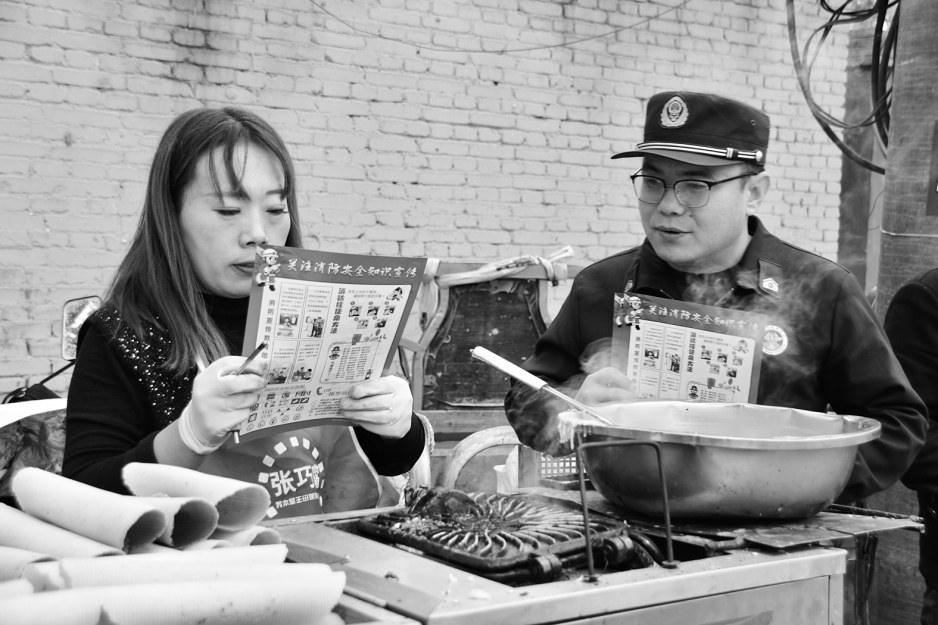 图②:连日来,曲沃县消防救援大队宣传人员走进各乡镇集市,通过发放资料、张贴海报、现场讲解、答疑解惑等方式,向过往群众普及家庭防火、电动车充电安全等知识。