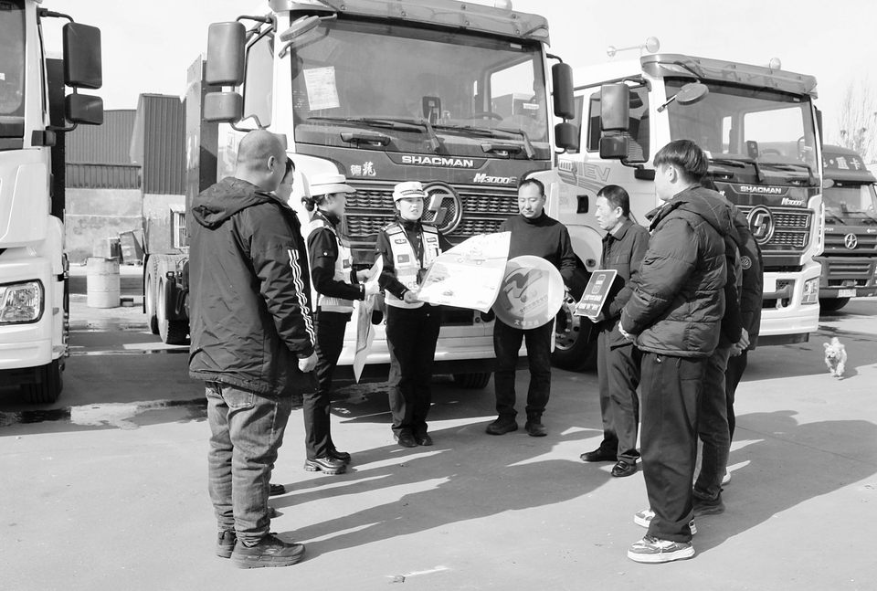 图① 日前,稷山县公安局交通管理大队组织宣传民辅警深入重点货运企业,以“文明交通 礼行天下”为主题开展交通安全宣传活动,筑牢冬季道路交通安全防线。活动中,民辅警通过发放宣传手册、张贴警示海报、专题宣讲、互动答疑解惑等形式,向企业负责人、安全管理人员及货车驾驶人精准普及道路交通法律法规。
