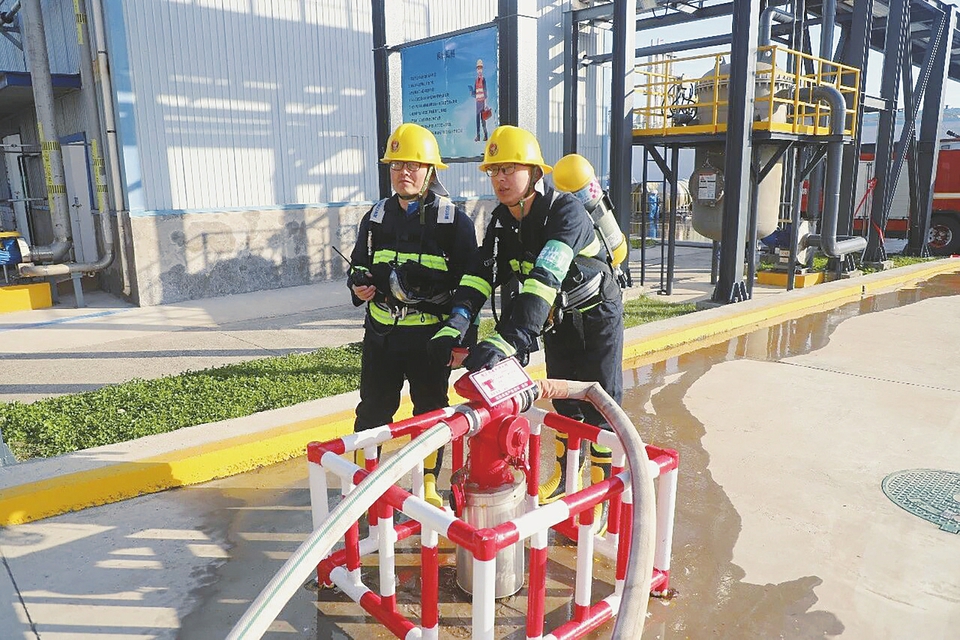 近日,运城市消防救援支队芮城大队联合辖区化工企业,共同开展了一场化工灭火救援实战演练。演练模拟园区内一处350立方米甲醇储罐因根部管线采出阀垫片破损,导致甲醇泄漏。险情发生后,企业微型消防站第一时间展开前期处置工作,组织人员有序疏散,实施关阀断料操作,并启动固定喷淋系统对储罐进行冷却。消防救援力量抵达现场后,迅速成立现场指挥部,并组建6个专业化小组协同展开救援。在各小组紧密配合下,大火被成功扑灭,充分展现了“空地协同、梯次推进、高效处置”的战术效果。 通讯员陈蓉摄