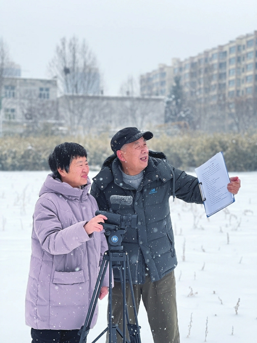 当时我们对拍摄一窍不通。在北京做动画的小儿子回来,手把手教我们剪辑。2013年,我们的第一部微视频《就在这里吃》诞生了。那时还没有短视频平台,作品在网上一天就有两千多次播放量。看到大家围着电脑认真观看的样子,我们找到了退休后的新方向——用身边事拍剧,让老百姓看剧学法。