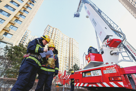 12月18日,大同市消防救援支队在平城区御西景苑小区开展高层建筑实战演练。 演练围绕高层固定消防设施效能、消防车辆性能极限、人装协同融合三方面展开。消防人员深入建筑内部,测试火灾报警、防排烟、消火栓等系统运行状况。在建筑外部演练区域,主战及举高类消防车协同作战,进行高层供水、登高控火等测试。此外,支队设置多个实战场景,组织消防人员开展装备携行、快速展开、协同进攻等科目演练,锤炼战斗员复杂环境下的装备操作熟练度和战术配合精准度。