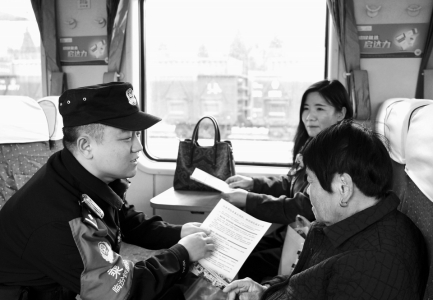 随着元旦假期来临,各地火车站客流量明显增加。为提升旅客的安全意识,12月20日,临汾铁路公安处乘警支队民警在车厢内向旅客宣传《铁路安全管理条例》等法律法规,全力保障旅客出行安全。