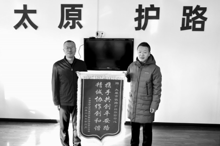 12月24日,中铁太原局集团有限公司太原工务段相关负责人为太原市铁路护路联防中心送去一面锦旗,对中心在铁路安全隐患协调治理、护路宣传等方面的工作成效表达谢意。