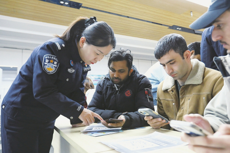 近日,山西边检总站开展了一系列便民服务活动,通过深化普法教育与出入境政策宣传,全力维护山西口岸出入境秩序安全平稳。上图为执勤六队在太原武宿国际机场口岸限定区域及旅客候检大厅,开展服务满意度问卷调查活动。左图为执勤四队民警赴太原理工大学(迎西校区)国际教育学院,宣讲出入境相关政策。