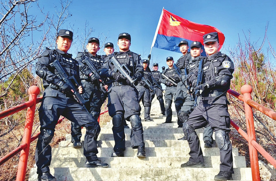 特警队员王瑞先是微微一怔,随即郑重地接过鲜花,“谢谢你,小朋友!这是叔叔收到的最好的节日礼物。”他身后的队员们也纷纷卸下执勤的疲惫,整齐地向小女孩敬礼致谢。