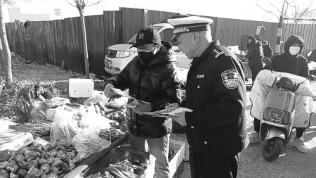 图1:近日,太原市公安局交管支队六大队民警走进各村集市,以发放宣传品和面对面宣讲相结合的方式,向摊主和赶集群众普及交通法规,助力筑牢农村道路交通安全防线。