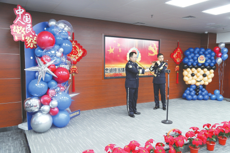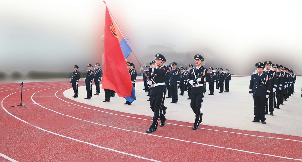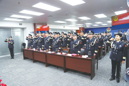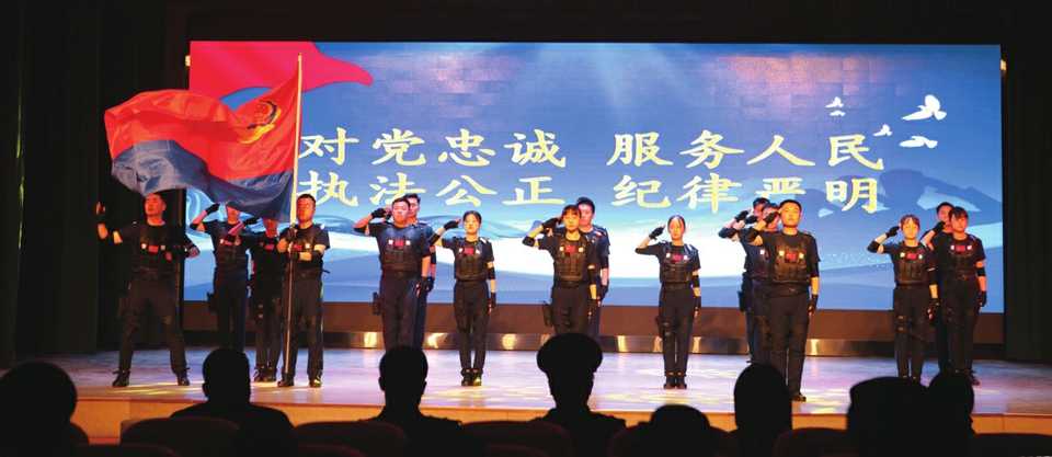 全体民警观看了中国人民警察警旗授旗仪式视频,深入领会习近平总书记重要训词精神的思想伟力,进一步筑牢忠诚核心、拥戴核心、维护核心、捍卫核心的思想根基,切实将政治自觉转化为行动自觉。随后,全体民警面向鲜红警旗庄严宣誓,铿锵有力的入警誓词响彻会场,字字千钧彰显初心使命,进一步坚定了全体民警赓续红色血脉、勇担时代重任的决心,凝聚起推动新时代戒毒工作高质量发展的磅礴力量。