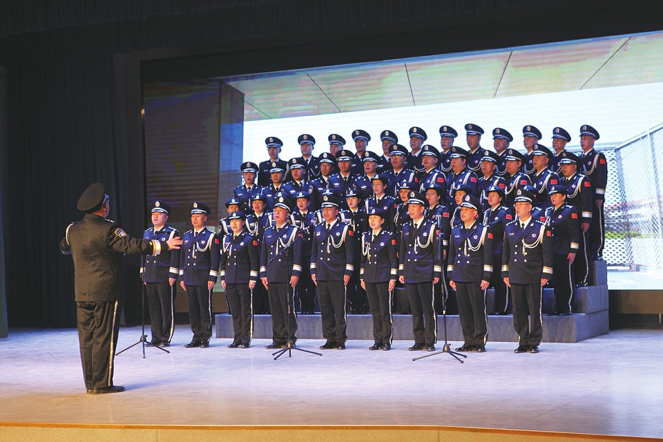 文艺演出在热烈欢快的氛围中拉开帷幕,精彩纷呈的节目轮番上演:合唱《我们都是追梦人》,展现了新时代戒毒人民警察昂扬向上的精神风貌;诗朗诵《晋警·新生》,深情礼赞了我省戒毒民警在新时代的新担当、新作为;脱口秀《乒乓球——首发不算》,以诙谐幽默的方式,讲述了民警工作生活中的趣事,引得现场掌声、笑声不断;琵琶独奏《十面埋伏》气势恢宏,展现了民警子女积极向上、传承优良家风的精神风貌;笛箫合奏《大鱼海棠》、笛子独奏《女儿情》婉转悠扬,展现出民警多才多艺的别样风采;歌曲联唱《珊瑚颂》《我和我的祖国》,抒发了民警对党和祖国的无限热爱与赤诚忠心;曲艺表演《保障战线联盟》,生动刻画了警务保障战线民警爱岗敬业、默默耕耘的形象;压轴登场的合唱《当那一天来临》,将现场气氛推向高潮,传递出转业军人民警时刻待命、誓为党和人民利益冲锋在前的使命担当。大会结束后,全体民警高声合唱《中国人民警察警歌》,雄壮嘹亮的歌声在会场久久回荡,为庆祝活动画上了圆满句号。