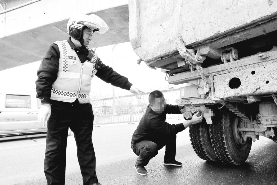 近日,运城市公安局盐湖分局交管大队一线中队民辅警结合交管实际,持续强化渣土车、商砼车整治力度,净化道路交通环境。图为民警要求驾驶人擦拭被污损车牌。