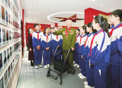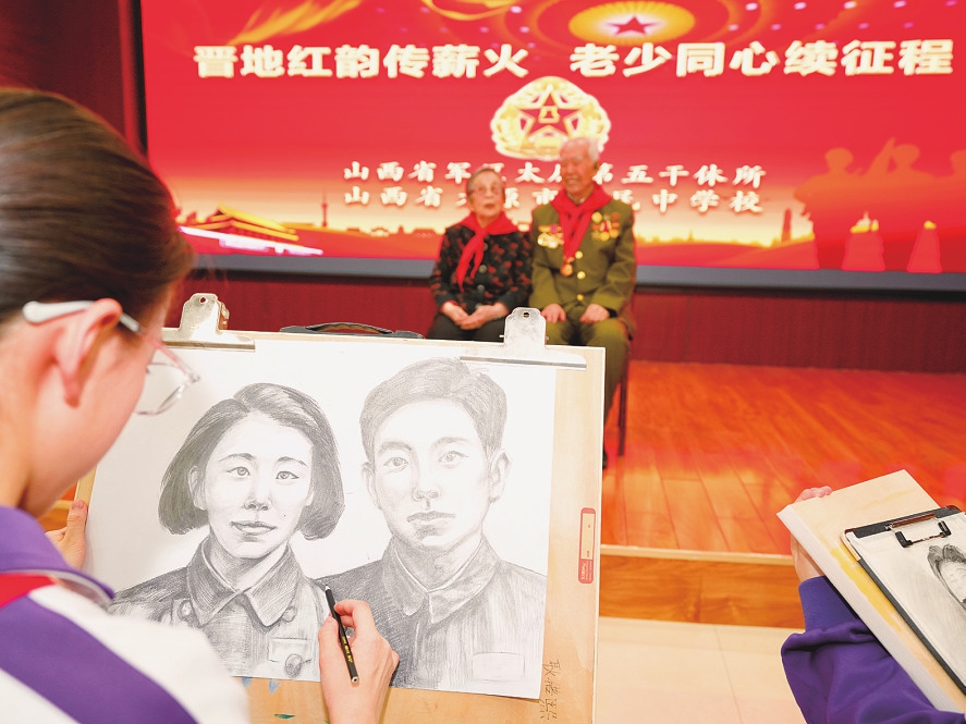 日前,省军区太原某干休所联合平民中学开展了以“晋地红韵传薪火 老少同心续征程”为主题的红色教育实践活动。 活动中,97岁的老兵高杰分享了自己的战斗经历,从艰苦的作战环境到激烈的战斗场面,从战友间的生死情谊到保家卫国的坚定信念,每一个故事都深深感染着在场学生。深受触动的学生纷纷拿起画笔,为老兵画像,向峥嵘岁月致敬。