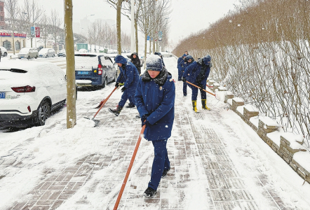 1月19日,晋城市迎来强降雪天气。市消防救援支队城区大队、经济技术开发区大队以雪为令,组织指战员清扫积雪,保障群众平安出行。