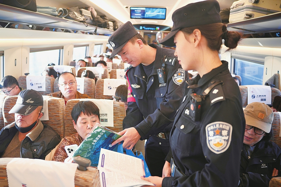 为了守护旅客财产安全,近日,临汾铁路公安处乘警支队值乘民警化身反诈宣传员,穿梭在车厢里,传授旅客反诈小妙招,将列车打造成反诈课堂,为旅客们送上了一份特别的平安礼。