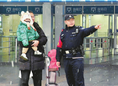 1月25日,我省大部分地区出现降雪天气。太原铁路公安处太原站派出所迅速启动应急响应机制,科学部署警力,加强站区巡逻密度和视频巡查频次,及时帮助重点旅客,同时加强安全宣传提示,提醒旅客注意防滑防摔,看管好随身行李。