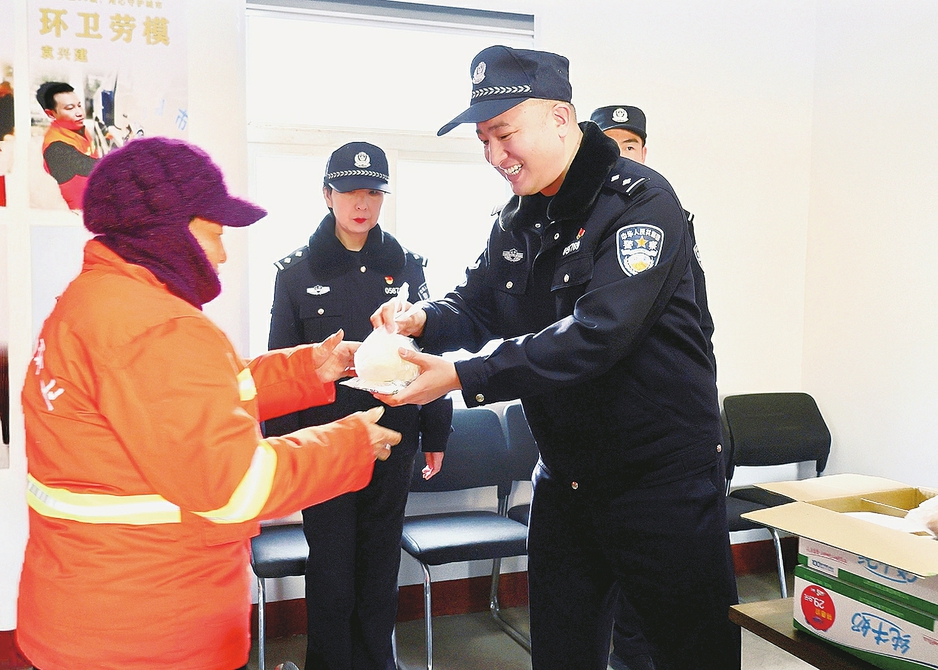 近日,沁水县公安局第五党支部组织党员民辅警开展暖心慰问活动,为坚守一线的环卫工人送上热气腾腾的爱心餐食,向这些“环境美容师”致以诚挚问候与敬意。