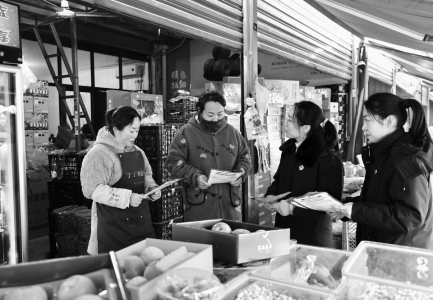 图1:近日,临汾市尧都区人民检察院干警联合临汾市公安局尧都分局民警走进馨阳农产品批发市场等地,开展烟花爆竹安全宣传活动,将安全知识送到群众身边。