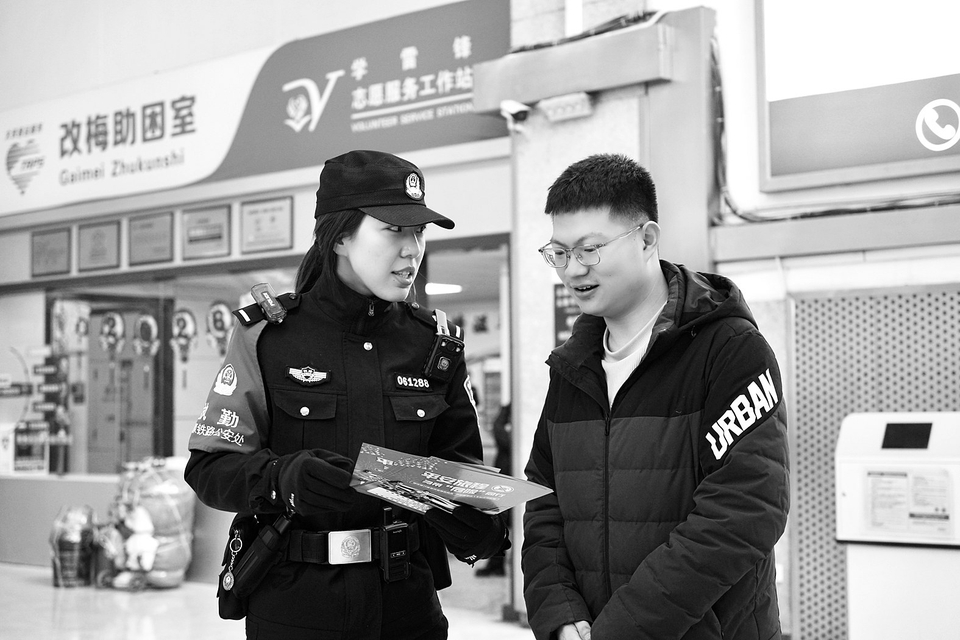 2月5日,太原铁路公安处太原站派出所民警在进站口、候车室开展反诈与禁燃宣传。 民警通过发放手册、现场讲解等方式,向旅客普及常见诈骗类型,重点提醒老人、务工人员、学生等群体提高警惕。同时,明确告知严禁携带烟花爆竹等危险品进站,引导旅客主动配合安检,进一步筑牢春运安全防线。