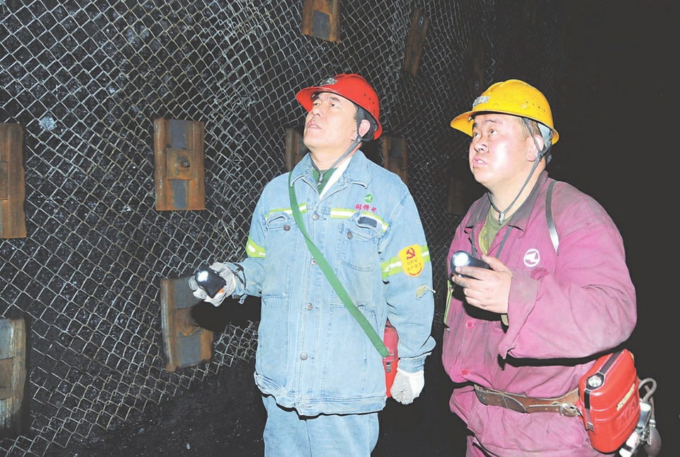 同煤集团同忻矿把“两学一做”学习教育与企业安全生产工作紧密结合起来,以安全警示教育月活动为契机,在全体党员中组织开展了党员结对“查隐患、反三违、堵漏洞、防事故”活动。图为该矿党员与瓦斯检查员正在掘进巷道共同查找安全隐患。