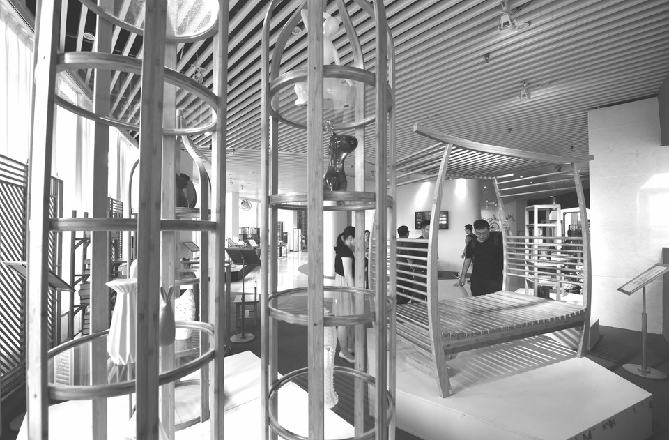 这是在永安竹天下文化广场展示的竹集成材休闲家居产品。 近年来,福建省永安市为了更好地保护森林资源,实施产业结构调整,大力推进林产品由木加工向竹加工转型,鼓励林农因地制宜发展“竹产业、林下套种、林下养殖、森林旅游”等非木质利用产业。目前,当地已发展数百户林下套种林农专业户,被国家林业局列为国家级林下经济示范基地。