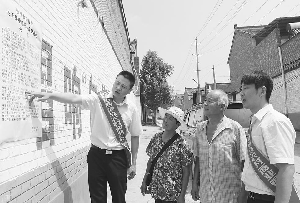 近日,侯马农商银行持续在辖内营造强有力的清收氛围。为了扩大宣传的覆盖面和影响力,该行宣传人员将印制的《侯马农商银行关于集中清收不良贷款的公告》张贴于辖内乡镇村庄的显著位置,并现场向周围群众讲解公告的内容和惩罚政策,使广大村民都明确恶意欠贷的严重后果,全力营造“欠贷得还、欠贷必还”的舆论氛围。