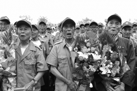 7月26日,山西省公益事业促进会联合太原市公安消防支队及经济区消防大队开展“纪念中国人民解放军建军90周年”慰问老革命军人“山西公益行走进军营”活动,活动邀请了省荣军医院的56名参加过抗日战争、解放战争、抗美援朝战争的老兵走进消防队,参观消防设施及展览,观看文艺演出,与消防官兵提前共度“八一”建军节。图为老兵们集体合唱《中国人民志愿军军歌》