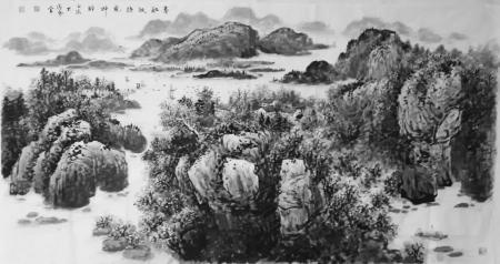 郜正路画竹,竹竿用笔自然圆浑,节与节之间虽断离而又连属;小枝行笔疾速,柔和而婉顺,枝与枝间横斜曲直顾盼有情;以浓墨写竹叶的正面,以淡墨表现竹叶的背面,或聚或散,疏密有致。山水构图奇异不奚落,笔酣墨饱,力健有锋,浓墨处浓黑透亮,淡墨处秀逸朦胧,蓊郁淋漓,气势磅礴,既有写意又有写实,既有抽象又有具象,意境深远。画石,造型如石笋,方劲挺峭,直入云端,桀骜不驯。画兰,多为山野之兰,以重墨草书之笔,尽写兰之烂漫天性。画花如蝴蝶纷飞,笔法洒脱秀逸。