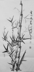 郜正路所画墨竹,多为写意之作,一气呵成。一枝一叶,不论枯竹新篁,还是丛竹单枝;不论是风中之竹,还是雨中之竹;都极富变化之妙,高低错落,浓淡枯荣,点染挥毫,形成清新、秀逸、劲健的艺术风格。