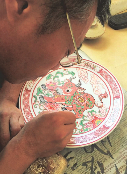 “我这是粗人玩细活。”李建平开门见山逐一介绍着八义窑红绿彩的历史和发展,“几年前,政府倡导让把八义窑恢复起来,作为一种责任和担当,我就这样承担下了这个历史重任。”