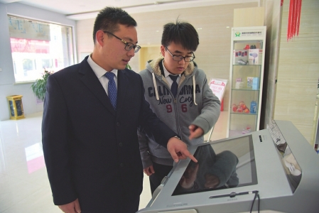 “这么方便就可以查询账户余额了,这机器真是太厉害了!”近日,沁县农信社首台“智慧柜员机”在城关信用社成功上线,客户纷纷争相体验,赞不绝口。图为客户体验智慧柜员机。