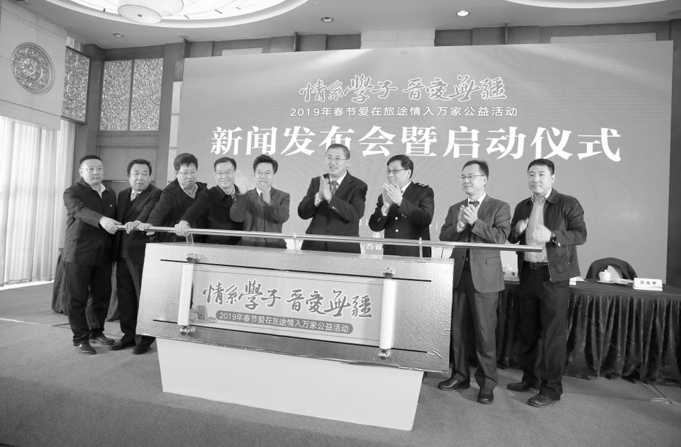 1月8日,“情系学子·晋爱无疆”——2019年春节爱在旅途情入万家公益活动在太原市迎泽宾馆启动。