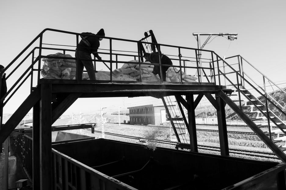 工作人员在调度运煤列车。
