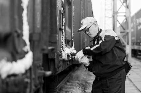 工作人员在检修运煤列车。
