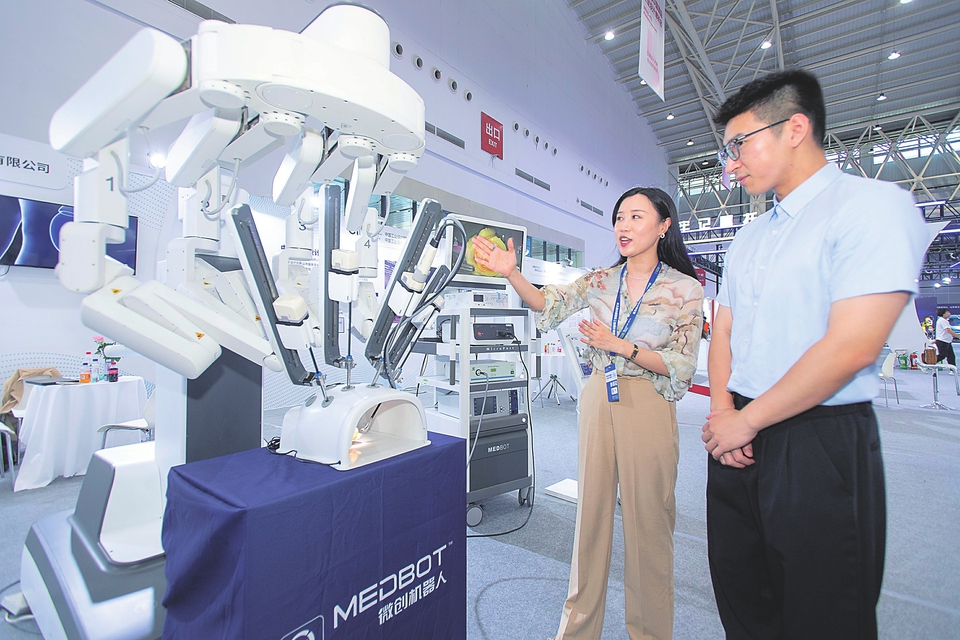 8月5日,观众在上海微创医疗展厅参观。 当日,第五届中国国际工业设计博览会在武汉国际博览中心开幕。本届博览会展览面积达3万平方米,参展商超过300家。