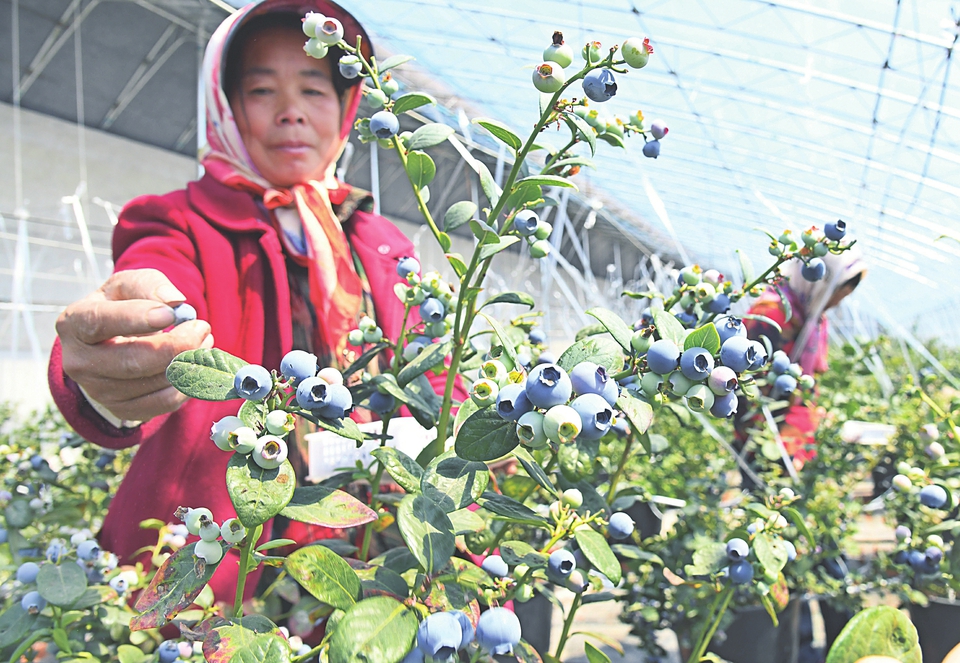 3月30日,村民在青岛西海岸新区张家楼街道多彩农场采摘蓝莓。 近年来,青岛西海岸新区农业农村部门大力扶持和发展蓝莓种植和加工,逐步形成了从组培育苗、规模化种植到精深加工、品牌化销售的全链条协同发展模式。目前,该区蓝莓种植面积近10万亩,年产值超40亿元。