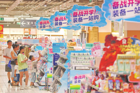 ③ 8月24日,在浙江省嘉兴市南湖区一家商场,家长带着孩子选购学习用品。