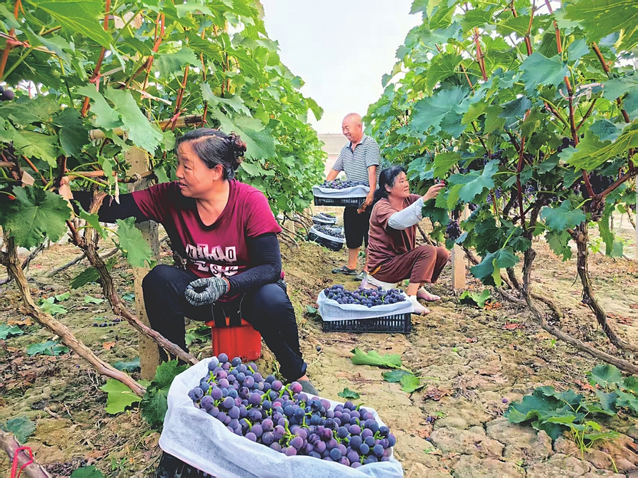 初秋的曲沃县史村镇卫村葡萄种植基地里,沉甸甸的果实似玛瑙般挂满枝头,村民们正忙着采摘、装箱,一幅生机勃勃的丰收画卷徐徐展开。