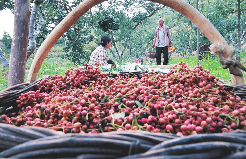 图为椒农正在整理采摘的花椒。高新生摄