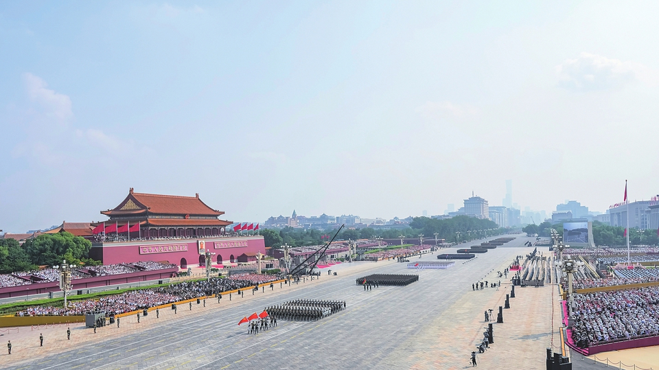 9月3日,纪念中国人民抗日战争暨世界反法西斯战争胜利八十周年大会在北京隆重举行。这是徒步方队接受检阅。新华社记者孙非摄