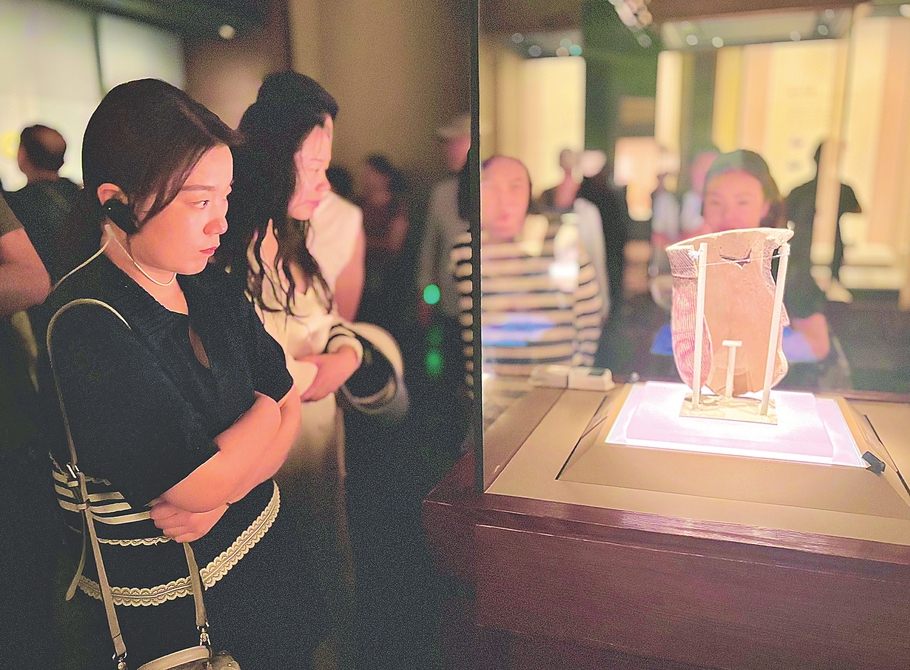 今年暑期,山西博物院凭借特色展览、服务升级与多元活动吸引了大量观众前来参观,接待量再创新高。 数据显示:7月1日至8月31日,山西博物院累计接待观众总量达99.3万人次,其中省外游客占比超过七成。 图为观众在参观馆藏文物。
