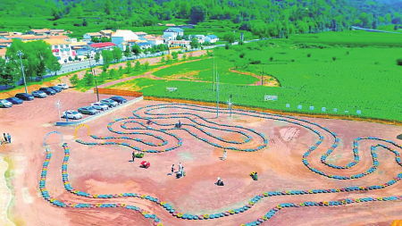 “无废共治”凝聚人心,“全民共建”扮靓家园。面对339国道穿境而过的特殊区位,沾尚村以“一拆三清一改”为抓手,清理残垣断壁,清淤河道2.5公里,栽植并修剪行道树2000余棵,处理秸秆垃圾10余吨,新建水冲式公厕2座。垃圾分类实行“农户分类+保洁员收集+专业处理”模式,3处分类亭、1处智能收集屋与8个治理网格织密管护网络。巧妙利用废旧轮胎、易拉罐打造微景观百余处,20余面主题文化墙绘出村规民约与民俗风情。