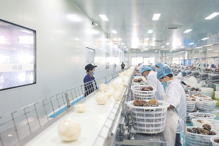 近年来,海南定安塔岭工业园把科技创新作为引擎,聚焦生物医药、新型食品加工和绿色建筑三大产业,推动“制造”向“智造”跃升。 目前,园区已集聚企业328家,其中规模以上企业52家,省级“专精特新”企业17家,高新技术企业16家。2025年上半年实现营业收入50.2亿元,同比增长34.19%。 9月4日,海南爱科椰业食品有限公司的工作人员在处理椰子。