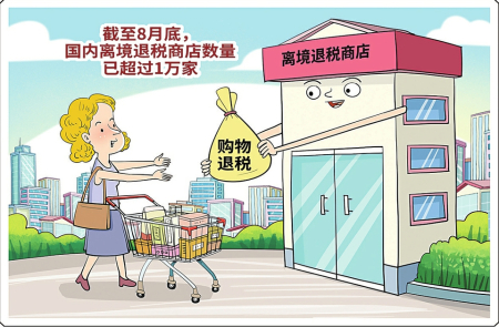国家税务总局最新数据显示,截至8月底,国内离境退税商店数量已超过1万家。今年前8个月,享受退税人数同比增长247.8%,退税商品销售额及退税金额同比分别增长97.5%和96.9%。