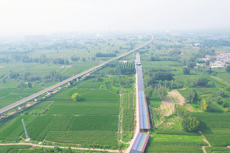该项目是深入践行碳达峰、碳中和愿景,积极落实“双碳”发展战略的具体实践。项目横跨“七一渠”尧都段30公里渠道,充分利用水利设施空间,实现“一地两用”的综合效益,是山西省首个合理利用灌渠上方空间建设的光伏发电项目。