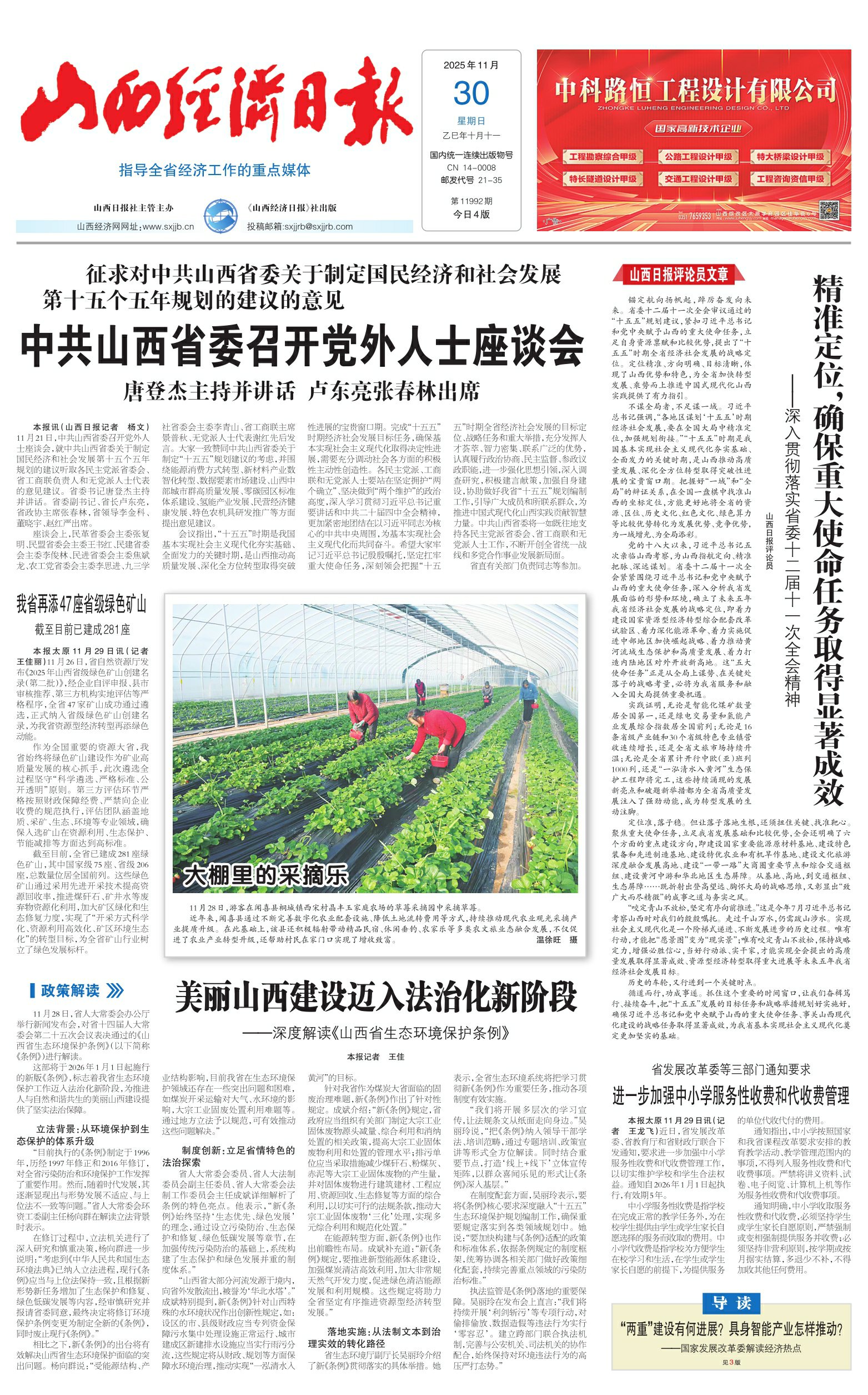 本报太原11月29日讯(记者王佳丽)11月26日,省自然资源厅发布《2025年山西省级绿色矿山创建名录(第二批)》,经企业自评申报、县市审核推荐、第三方机构实地评估等严格程序,全省47家矿山成功通过遴选,正式纳入省级绿色矿山创建名录,为我省资源型经济转型再添绿色动能。