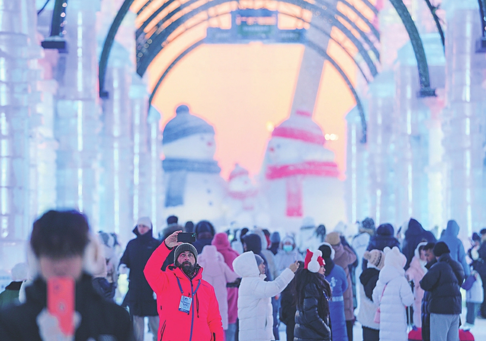 北国风光,银装素裹。黑龙江哈尔滨冰雪大世界内,游客们熙熙攘攘,或在冰雕前拍照,或在冰滑梯旁排起长队。“第一次看到这么多冰和雪,玩得特别尽兴!”来自广州的游客赵昕然说。