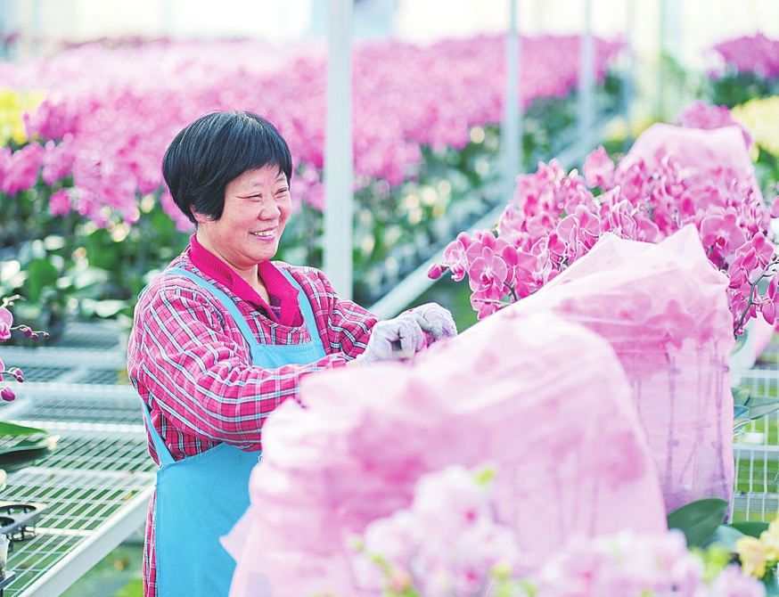 ④ 1月23日,花卉工人在江苏省泰州市姜堰区顾高镇现代园艺产业园基地为花做造型。