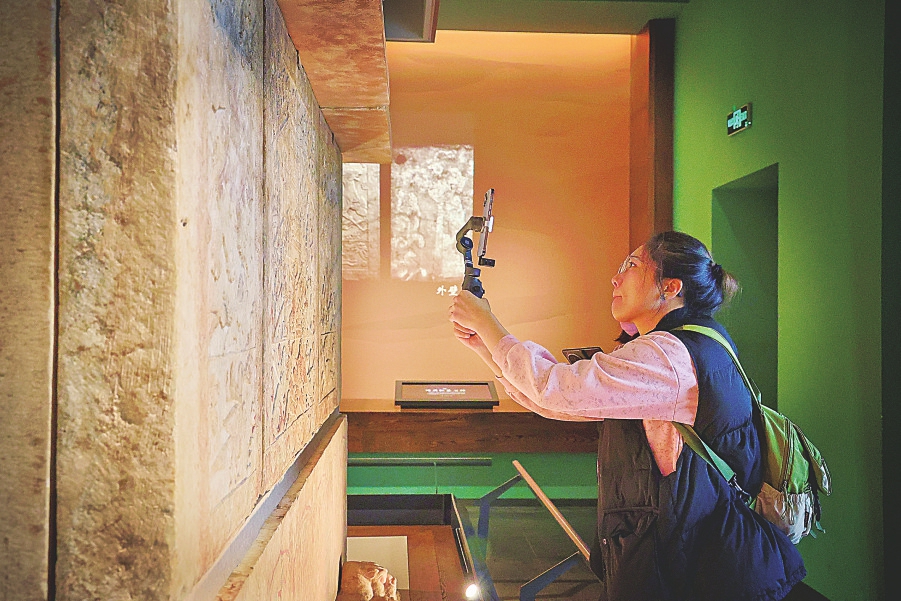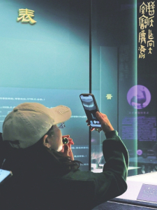 晋阳古城考古博物馆内,游客通过触摸屏了解北齐墓志铭。