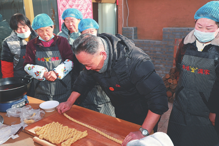 据悉,此次活动与辖区驻地文旅项目深度联动,推出多项惠民举措:为村民、环卫工人免费送上精心熬制的腊八粥以及本土风味大烩菜;邀请书法家现场书写春联,为活动现场的参与者送上新春祝福;设置窗花剪纸体验区,感兴趣的游客可亲手体验剪纸乐趣;展示传统麻花的制作过程,并向游客赠送酥脆可口的麻花。此外,结合“冰雪赠欢乐、文旅促发展”主题,游客还有机会领取冰雪乐园门票,体验冰雪运动的快乐。