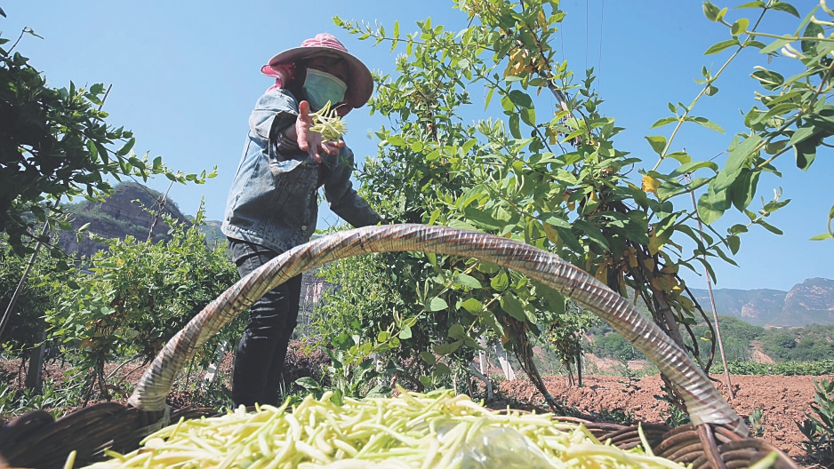 盛开的金银花,给村民换来了真金白银。从烘干机输进去希望,把生活的报酬揣进兜里。