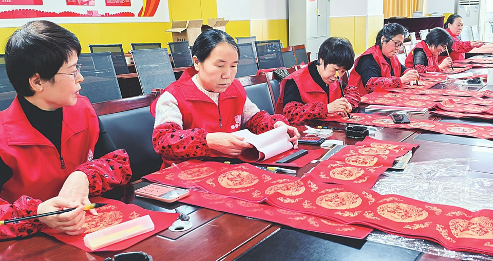 春节临近,年味渐浓。日前,新绛县组织书法爱好者深入基层一线,开展“万马奔腾、迎春接福”写春联送祝福活动。书法爱好者走进新城幼儿园、应急管理局,为一线教师、干部职工书写春联和福字,并送上新春祝福。图为书法爱好者现场书写春联。